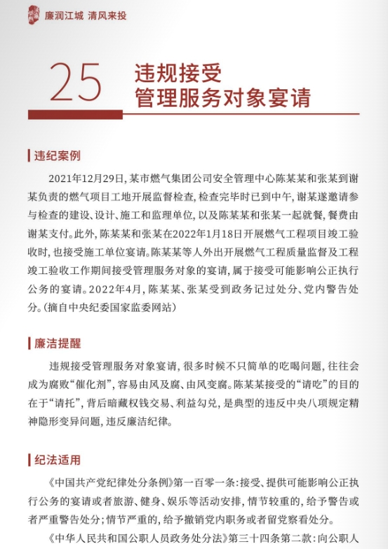 【党风廉政宣教季】小红书导入行动|25 违规接受管理服务对象宴请
