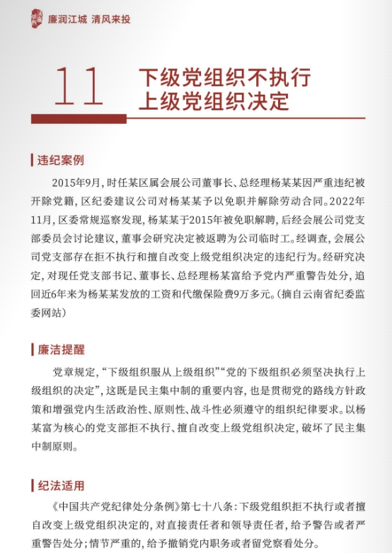 【党风廉政宣教季】小红书导入行动|11 下级党组织不执行 上级党组织决定