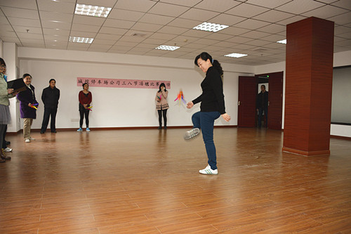 在“三八”国际劳动妇女节即将来临之际,为让女职工们度过一个快乐、祥和的节日,2015年3月5日上午,城投停车场公司工会组织全体女职工在公司四楼活动室举行“三八” 妇女节踢毽比赛。公司党委书记、董事长孙晓波等到场为参赛队员加油助威。