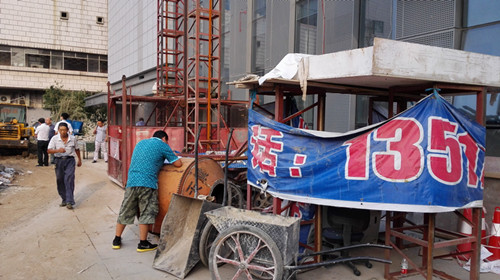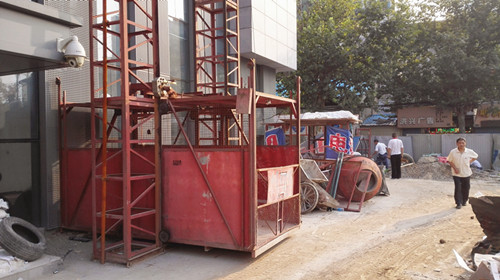 1、正在装修的商业配建楼外墙临时电梯存在安全隐患