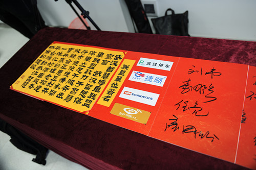 公司董事长刘伟、深圳市捷顺科技实业股份有限公司武汉公司董事长李国强、深圳市前海亿车科有限公司副总裁任亮、无线飞翔科技有限公司董事长颜国顺作为联盟成员在联盟宣言上签字。