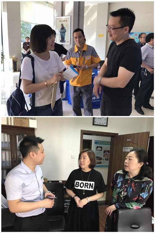5月17日上午,“诚诚”、“婷婷”来到武汉水务集团公司,开启“武汉停车进机关”第三站宣传工作,向武汉水务集团公司的领导、同事们进行宣传。解读了停车系统的独特优势,介绍了停车收费的原理,并就如何交费、如何补交等做了详细的说明。