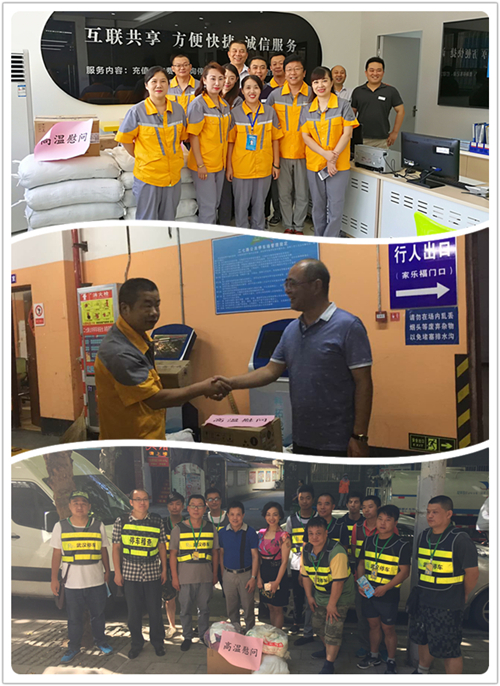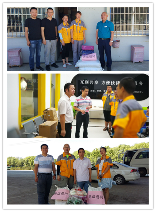 2017年7月21日上午,根据公司高温慰问工作的统一安排,公司领导班子成员分别带队前往洪山公园分中心、二七路公共停车场、武胜西街、欢乐谷公共停车场等5个道路停车单位及4个运营分中心,看望慰问了高温酷暑里奋战在运营一线的工作人员,并送去了防暑药品、毛巾、绿豆、白糖等防暑降温用品,在炎炎夏日中送去了公司的一份清凉和关怀。