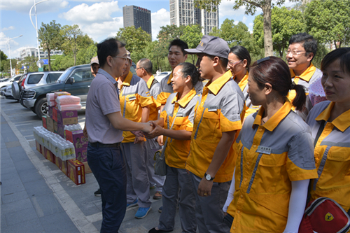 7月19日下午,市城投集团公司党委委员、工会主席江强生一行到我公司洪山区书城路文治街看望慰问在高温酷暑下坚守在道路停车泊位管理一线的工作人员。 江主席实地了解了道路巡查人员的工作情况,对他们顶着高温辛勤工作表示敬意和感谢,还为现场人员带来了丰富的防暑降温慰问品。江主席叮嘱工作人员要切实加强防暑降温工作,科学合理安排作息时间,认真落实好各项防暑降温措施,全面排查安全生产隐患,进一步做好高温季节的安全生产工作,有关部门要全力做好后勤保障,希望大家共同努力、全力以赴确保道路停车工作安全有序推进。