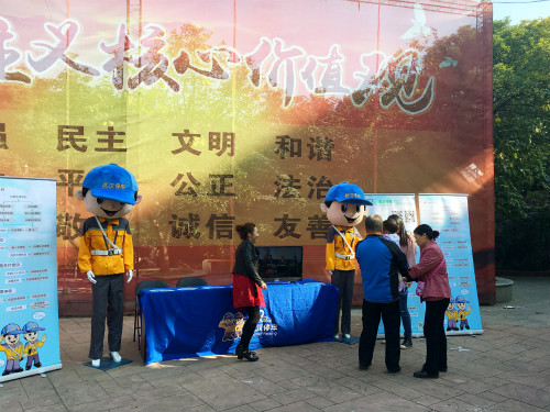 2017年10月31日,正值阳光明媚,秋高气爽,“诚诚”“婷婷”一早也做好了准备,进入这个全国文明社区示范小区开展“武汉停车”宣传活动。