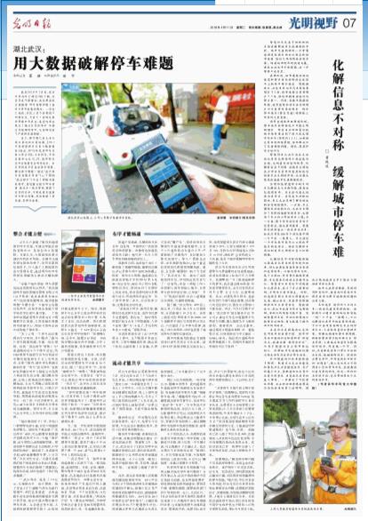 “为了让每一个停车泊位都得到充分利用,我们整合了路内外停车数据资源,实施一体化管理。目前,‘武汉停车’管理了337条道路的近2万个停车泊位,约1000家停车场的空余车位和进出车辆信息能够在平台上实时发布,实现了路内、路外停车数据交换和共享。”参与“武汉停车”系统研发和建设的双可智能公司负责人柯运桂告诉记者,通过整合资源,让线上数据流动代替线下车辆流动,车主不用像以前那样兜兜转转地寻找停车位,只要打开手机,就能进行空闲泊位查询和导航,周围或目的地附近哪里有车位一目了然,不仅方便停车,还可以减少由盲目寻找停车位带来的交通拥堵。停好车后,车主还可以在手机上反向寻车和自动缴费。