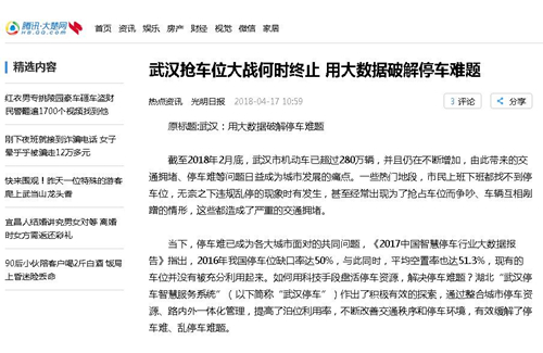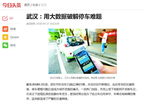 截至2018年2月底,武汉市机动车已超过280万辆,并且仍在不断增加,由此带来的交通拥堵、停车难等问题日益成为城市发展的痛点。一些热门地段,市民上班下班都找不到停车位,无奈之下违规乱停的现象时有发生,甚至经常出现为了抢占车位而争吵、车辆互相剐蹭的情形,这些都造成了严重的交通拥堵。