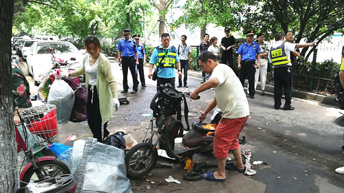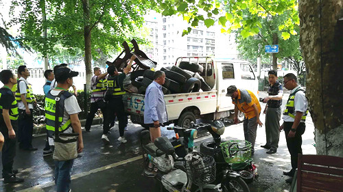 “武汉停车”运行至今,车主停车、找车位都方便了,停车秩序都大为改善,但有的泊位却又出现了被沿街商户或个人霸占的情况。为遏制私占泊位现象的死灰复燃,为市民创建良好停车环境,5月16日上午10点,在武汉市城管委道路停车收费管理中心的统一领导下,武昌区城管执法大队、武汉市城投停车场公司等三家单位联合,集中整治中山路停车泊位上的私自霸占泊位现象。