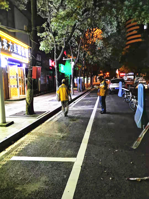 为解决汉口雪松路美食一条街一直存在停车难、停车乱的问题,“武汉停车”多次协调江汉区交通大队到现场勘查、调研,科学制定了雪松路停车泊位施划方案。9月5日晚11时启动了雪松路泊位施划工作,及时协调相关部门做好周边住户思想工作,协助交警做好路面违停车辆整治工作,保障施工路段通畅。9月5日至6日,两晚连夜施工,以最大的力度、最快的速度,协调推进雪松路停车泊位建设工作,共施划一类泊位93个,7日正式投入运营。