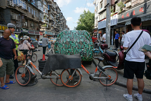 “武汉停车”运行以来,车主停车、找车位都方便了。但有的泊位却又出现了被沿街商户或个人霸占的情况。为遏制私占泊位现象,为市民创建良好停车环境,二七分中心负责人桂五洲、中队长吴恒积极对接辖区交管和城管部门,开展了一次针对私占泊位的联合行动。
