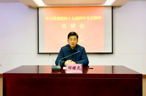 12月17日下午,市城投集团公司董事、党委委员邓耀光到停车场公司,以《深入学习贯彻党的十九届四中全会精神,奋力谱写停车场事业新篇章》为题,向公司班子成员、党员干部、入党积极分子和职工群众代表宣讲党的十九届四中全会精神。