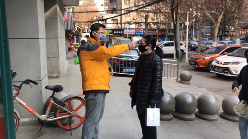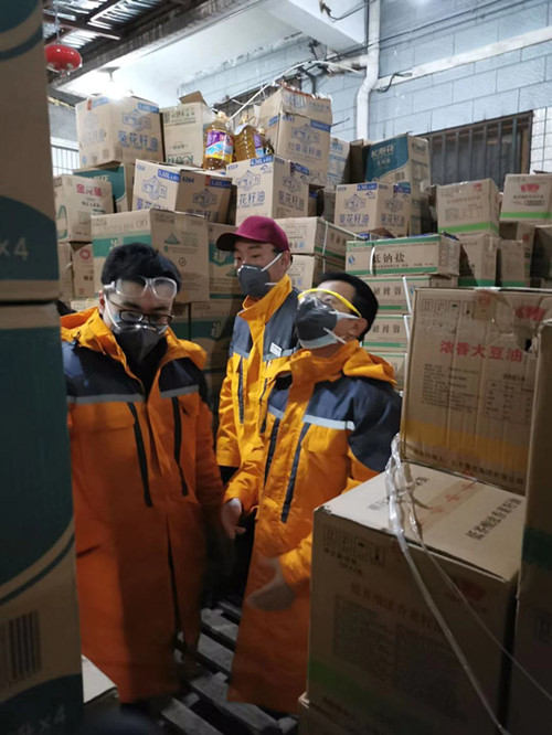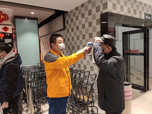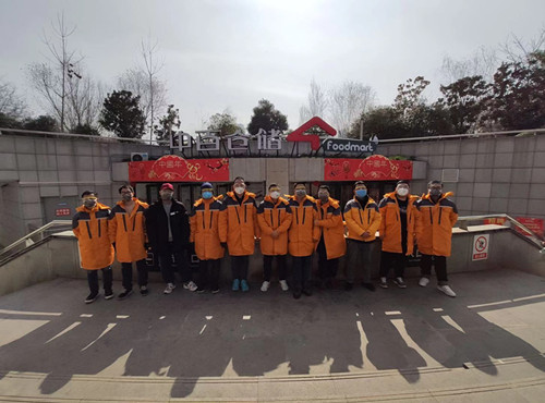 1月30日中午,12名防疫工作预备队员克服交通困难,全员上线,分成两组支援中百仓储北湖店、台北路店。防疫队员们积极配合仓储员工开展消毒防疫工作,为每一位顾客测量体温,在仓储负责人的指导下完成场所消毒工作;配合仓储员工做好后勤保供工作,搬运货物、补充商品;维持现场秩序,引导顾客排队付款,减少超市滞留顾客。