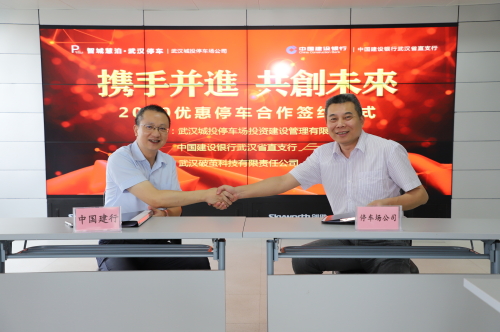 8月12日10时,武汉城投停车场公司携手建设银行股份有限公司武汉省直支行举行了优惠停车项目合作签约仪式。武汉城投停车场公司董事长刘伟、中国建行武汉省直支行纪委书记杨文代表行长万永新进行了会谈,共同见证并进行了停车优惠合作协议签约。