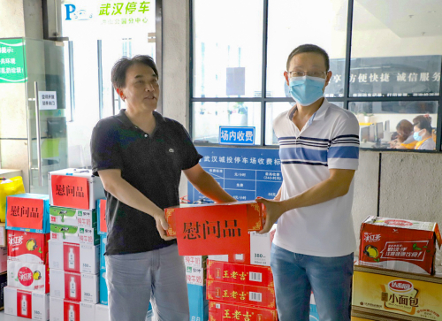 7月22日下午,市城投集团公司党委副书记吴文来到洪山公园公共停车场,慰问在酷暑中坚守岗位、辛勤工作的一线人员,并为他们送来了高温和防汛慰问物资。停车场公司董事长刘伟、工会主席郭庭军陪同慰问。