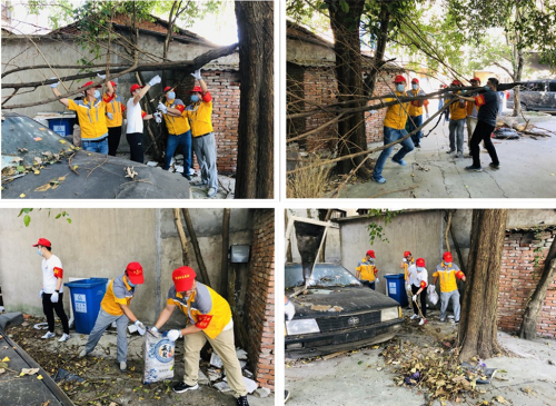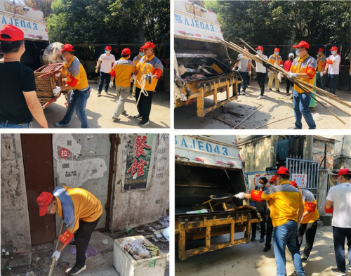 社区清理现场,突击队员们不惧烈日高温,分工合作,全力投入劳动中。小区一处角落由于僵尸车长期停放无人清理,布满了大量的枯枝杂草和废弃垃圾,清理上有难度,大家一时无从下手,公司下沉党员突击队的队员们二话不说,戴上手套,开始清理折断的大树枝,铲枯叶,捡垃圾......全然不顾脏和累,在队员们齐心协力的配合下,又脏又乱的卫生死角立刻焕然一新。