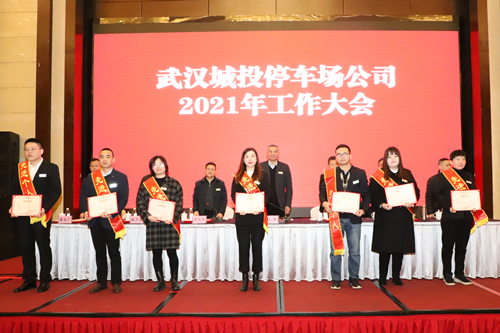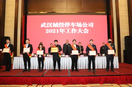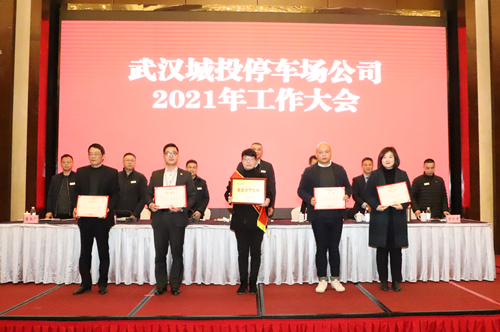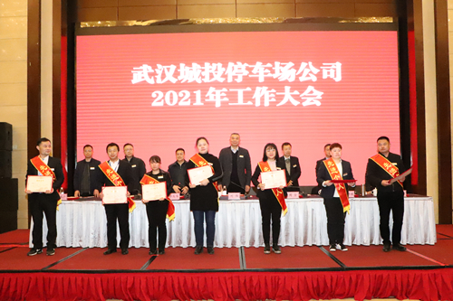 2021年3月8日上午,武汉城投停车场公司召开2021年工作大会,总结公司2020年工作,部署2021年主要发展目标和任务,安排2021年重点工作。 会议由公司党委副书记、纪委书记郭庭军主持;公司副总经理钟峥嵘宣读了公司表彰决定;公司领导向先进集体、先进个人、最佳合作伙伴和工会积极分子等获奖人员颁发了奖牌、奖状。
