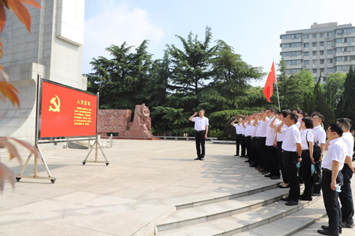 面对鲜红的党旗,公司党委书记、董事长刘伟同志的领誓,全体党员高举右手庄严宣誓,铿锵有力的誓言响彻纪念馆上空,重温对党忠诚的誓言,坚定理想信念,增强宗旨意识,不忘本真,面向未来,永葆本色。