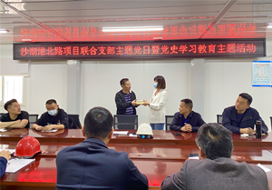 活动中,党委工作部还代表公司向项目临时党支部赠送了党史学习书籍,为项目一线党员送去了精神食粮,随后还组织观看了党史专题片《征程》。学习结束后,党员现场观摩沙湖港北路项目,详细了解项目概况、施工工艺、安全文明生产等情况,通过将理论学习与现场学习相结合的形式,让党史学习教育阵地活起来、动起来,促进党员们相互交流,在项目上掀起了党史学习教育的热潮。