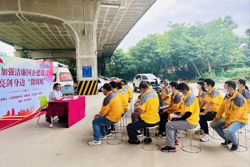 在复兴路分中心现场,郭庭军同志首先传达市纪委党风廉政建设和反腐败有关文件精神,带领大家学习市纪委《关于5起违反中央八项规定精神典型案例的通报》。随后,以《加强清廉国企建设,亮剑身边“微腐败”》为题,从“微腐败”的存在性及危害性、全面从严治党有腐必反、实际行动把“三关”等三个方面为大家讲授一堂生动的廉政党课,并提出了廉政相关工作要求。