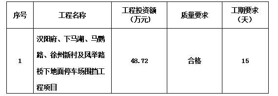 我公司拟对汉阳府、下马湖、马鹦路、徐州新村及凤举路桥下地面停车场围挡工程项目面向社会进行公开比选,有关事项公告如下: