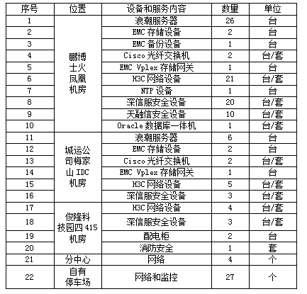 为保证平台运维工作持续正常开展,确保系统稳定运行,为生产业务提供安全、稳定的基础环境,需要对以下设备进行运维服务。