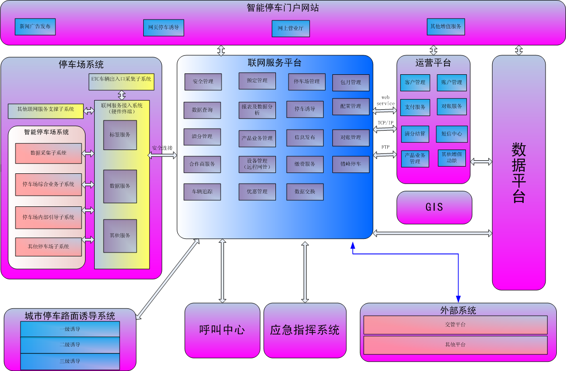 武汉智能停车综合管理系统是利用武汉现有的ETC资源,结合视频识别、无线传感等技术,通过诱导屏、手机、网站等多渠道进行停车信息推送,并面向社会提供全方位停车管理及服务的综合平台,整个系统包含12个区域级子系统,以武汉市核心商圈为基础,向周边辐射,逐步覆盖到武汉全市。