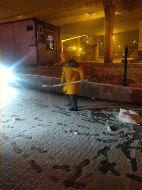 就是这群身着橙色制服的人,他们任凭风吹雪打,顶着寒冬的萧萧北风,坚守在一线,从未动摇。风雪中我们在坚守!